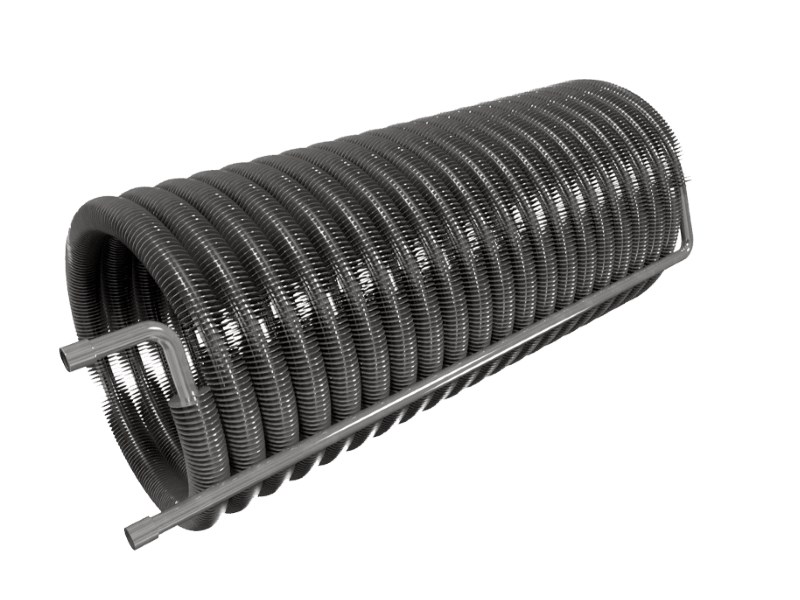 O tipo de alheta usado é uma base ondulada. A fita é enrolada ao redor do tubo e soldada com um procedimento adequado. Além de oferecer boa economia de produção, garante excelente transmissão de calor entre o tubo interno e as alhetas. Os materiais do tubo e das alhetas podem ser combinados de acordo com as necessidades do cliente e condições de operação.